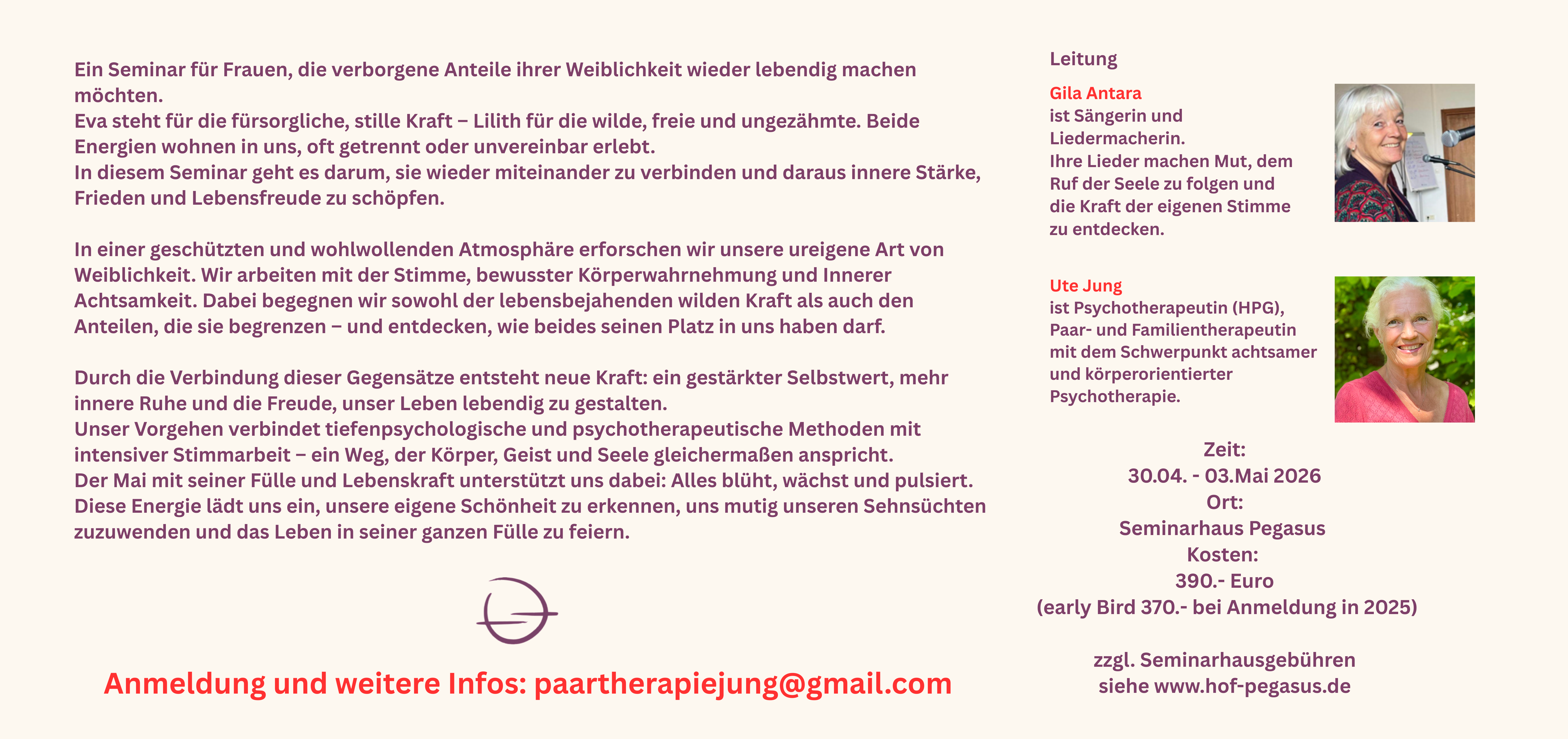 Eva & Lilith - zwei starke Frauen in dir zwischen Fürsorge und Wildheit - Weiblichkeit in Balance